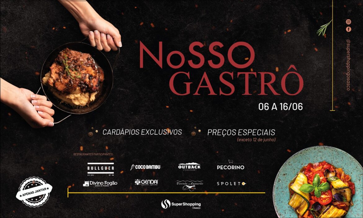 Osasco, 29 de maio de 2024 – O SuperShopping Osasco garante uma experiência gastronômica imperdível para seus clientes com o Nosso Gastrô. Dos dias 6 a 16 de junho, os melhores restaurantes do shopping center preparam menus exclusivos com entrada, prato principal e sobremesa por preços únicos para deixar o jantar das famílias ainda mais gostoso.
