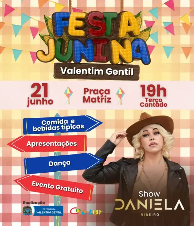 🌟 Super Cantora Daniela Ribeiro irá incendiar o palco neste Arraiá Junino! Prepare-se para uma experiência musical única: