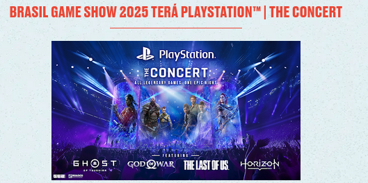 A PlayStation eleva o nível com o PlayStation in Concert , um espetáculo sinfônico com trilhas icônicas de God of War, The Last of Us e outros títulos amados. É a combinação perfeita de música e nostalgia para emocionar qualquer gamer.